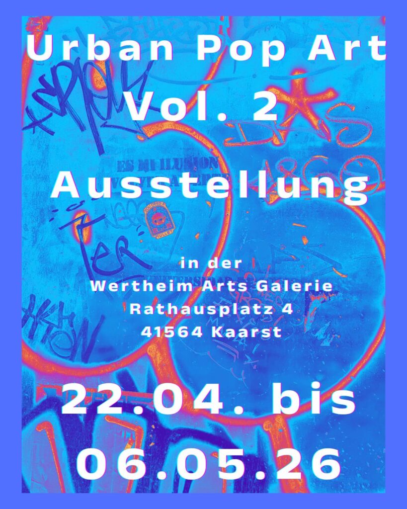 Urban Pop Art Vol. II – eine Einladung in die Wertheim Arts Galerie, Kaarst-Büttgen Startdatum: 21. April 2026 - Enddatum: 6. Mai 2026Uhrzeit: 10:00Ort: Rathausplatz 4, 41564 Kaarst-Büttgen